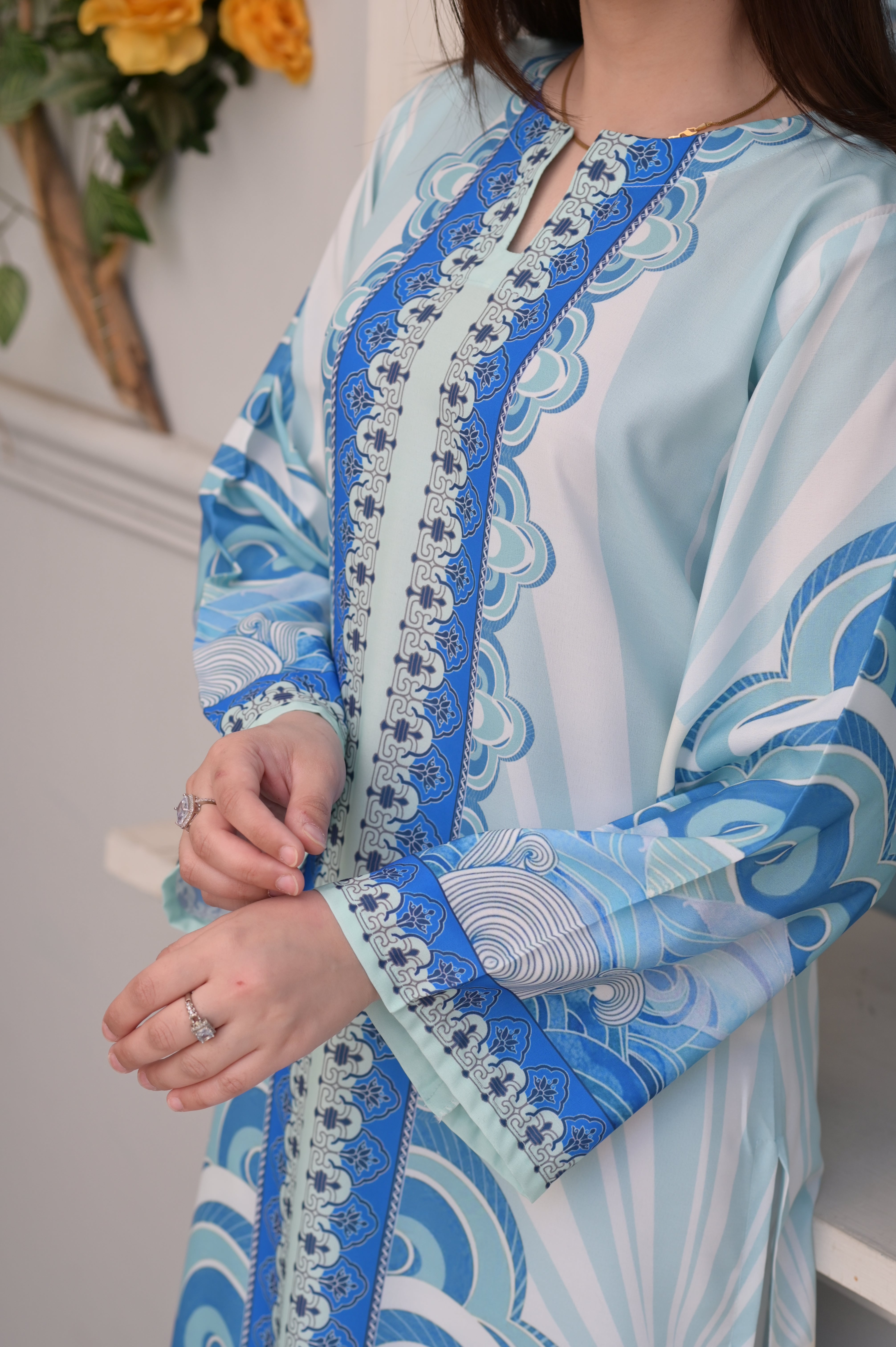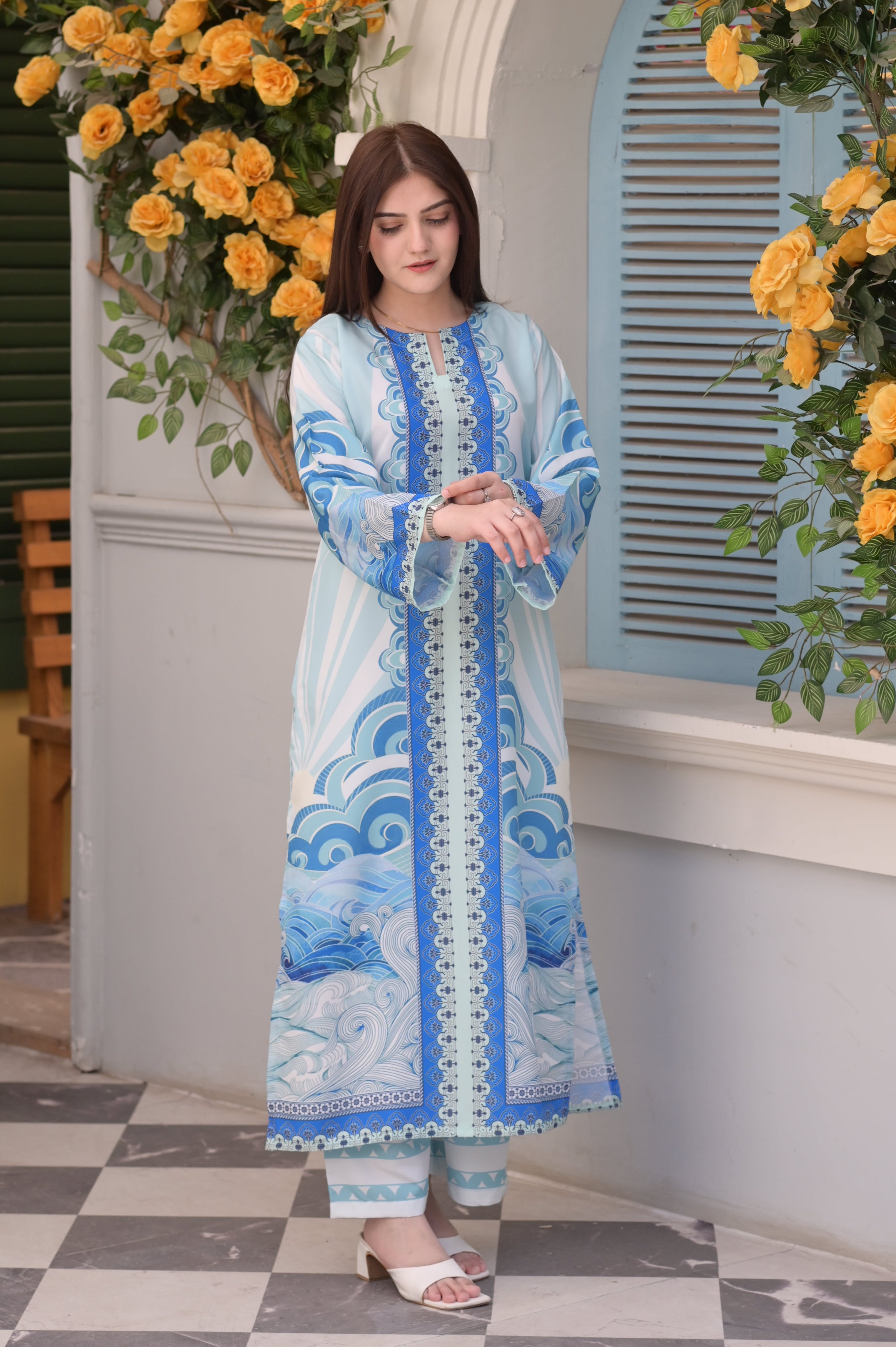 Refresh your wardrobe with our Serenity Co-ord Set, beautifully tailored from premium Blended Lawn for a light, airy feel. Designed especially for summer comfort yet versatile enough for all seasons, this set blends timeless Pakistani aesthetics with modern minimalism. The soft pastel tones enhance its graceful charm, while the breathable fabric keeps you cool and comfortable throughout the day.
