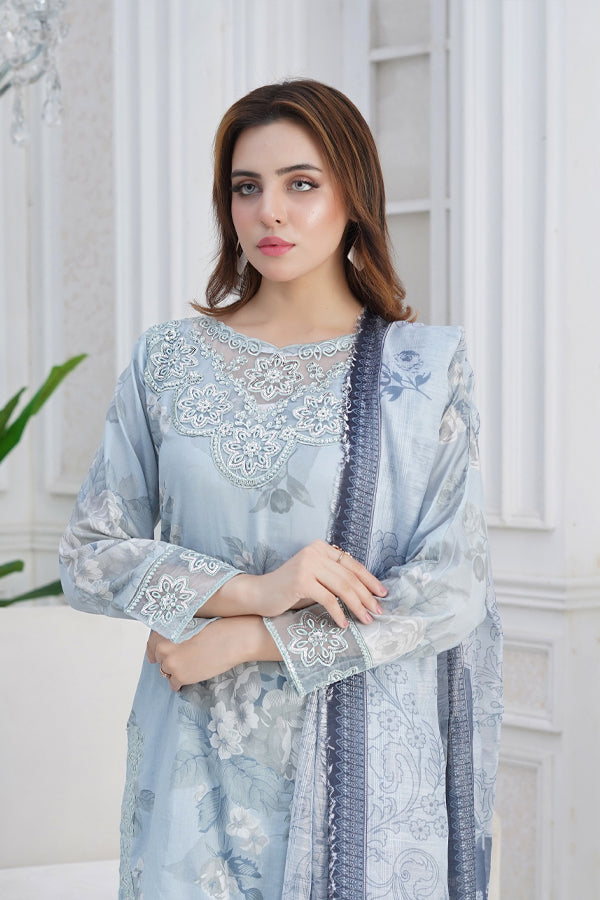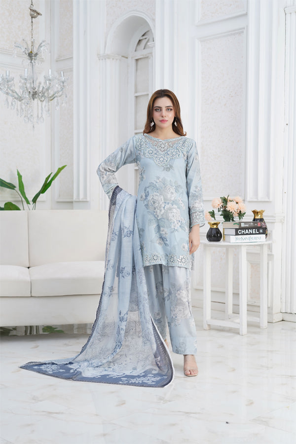 Our fabric is crafted from 100% pure cotton lawn, celebrated for its lightweight, breathable, and luxuriously soft nature. With its fine, smooth texture and graceful drape, this fabric offers effortless elegance while ensuring all-day comfort. Designed to keep you cool and fresh in warm weather, it blends timeless sophistication with natural ease, making it a perfect choice for both everyday wear and special occasions.