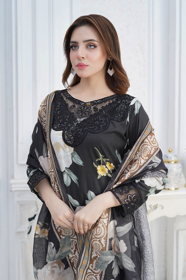 Our fabric is crafted from 100% pure cotton lawn, celebrated for its lightweight, breathable, and luxuriously soft nature. With its fine, smooth texture and graceful drape, this fabric offers effortless elegance while ensuring all-day comfort. Designed to keep you cool and fresh in warm weather, it blends timeless sophistication with natural ease, making it a perfect choice for both everyday wear and special occasions.