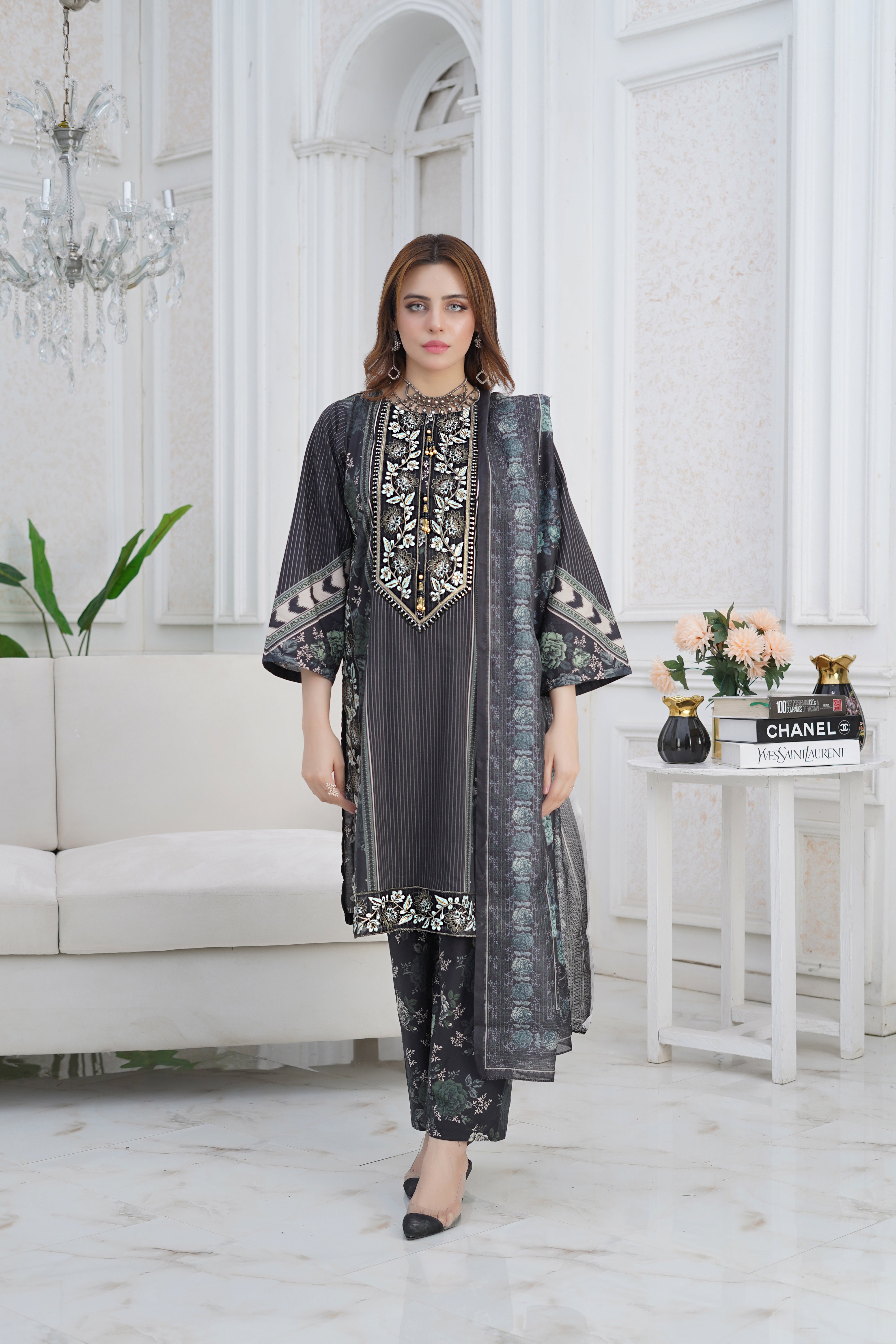 Our fabric is crafted from 100% pure cotton lawn, celebrated for its lightweight, breathable, and luxuriously soft nature. With its fine, smooth texture and graceful drape, this fabric offers effortless elegance while ensuring all-day comfort. Designed to keep you cool and fresh in warm weather, it blends timeless sophistication with natural ease, making it a perfect choice for both everyday wear and special occasions.