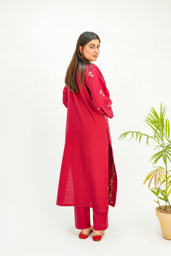 Refresh your winter wardrobe with Lalkaar, an exquisitely embroidered shirt crafted from premium pure wool . Designed to offer comfort during the early winter chill, Lalkaar captures the essence of traditional Pakistani artistry blended with modern sophistication. The earthy olive tones and intricate embroidery bring graceful warmth to your look, while the soft, breathable texture ensures ease through changing seasons.