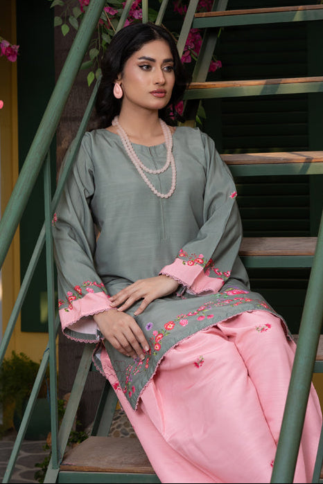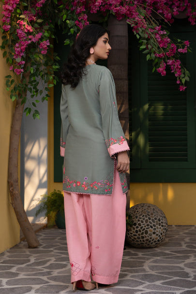 Refresh your winter wardrobe with our Serenity Co-ord Set, a beautifully tailored outfit made from Soft Khaddar. Designed to bring comfort during the early winter chill, this set blends traditional Pakistani charm with modern sophistication. The soft pastel tones add graceful warmth to your look, while the breathable texture ensures comfort through changing seasons.