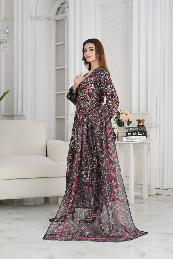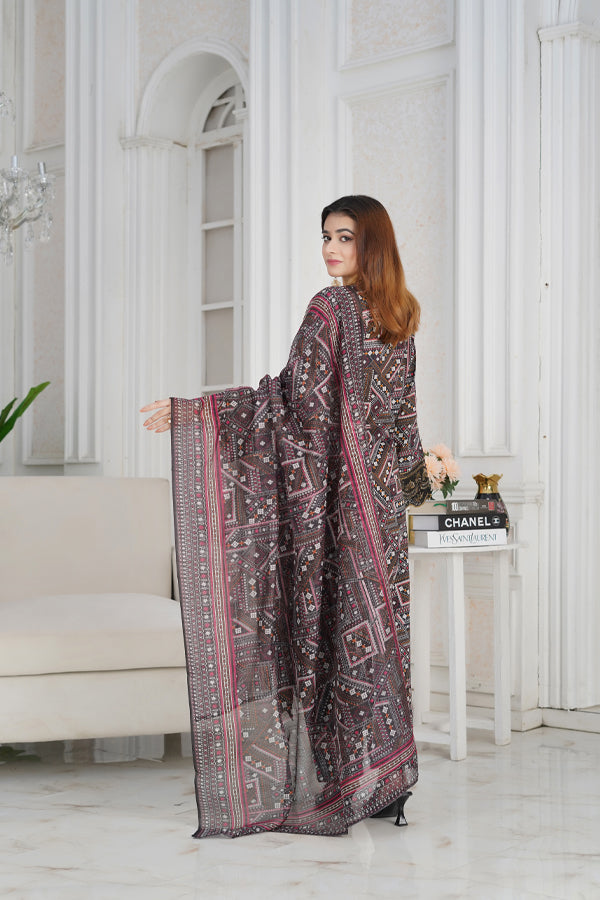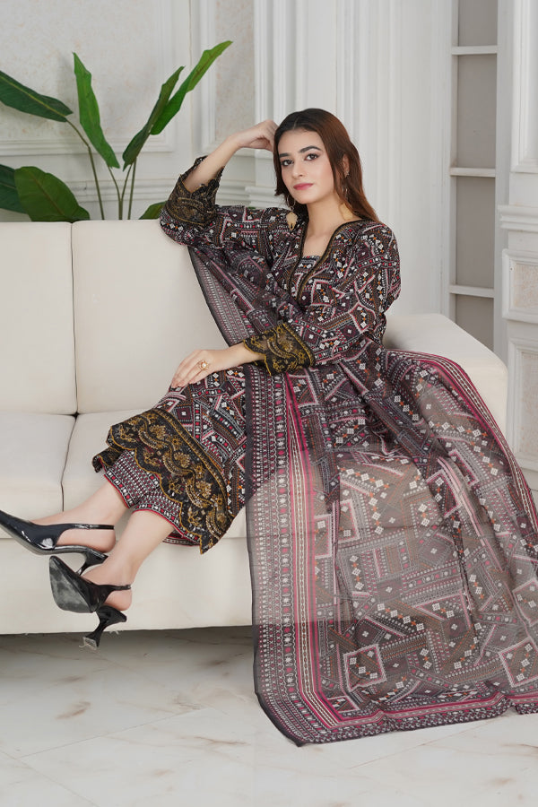 Our fabric is crafted from 100% pure cotton lawn, celebrated for its lightweight, breathable, and luxuriously soft nature. With its fine, smooth texture and graceful drape, this fabric offers effortless elegance while ensuring all-day comfort. Designed to keep you cool and fresh in warm weather, it blends timeless sophistication with natural ease, making it a perfect choice for both everyday wear and special occasions.