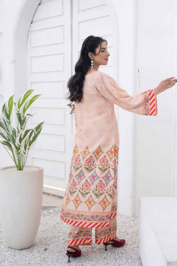 Refresh your winter wardrobe with our Serenity Co-ord Set, a beautifully tailored outfit made from Soft Khaddar. Designed to bring comfort during the early winter chill, this set blends traditional Pakistani charm with modern sophistication. The soft pastel tones add graceful warmth to your look, while the breathable texture ensures comfort through changing seasons.