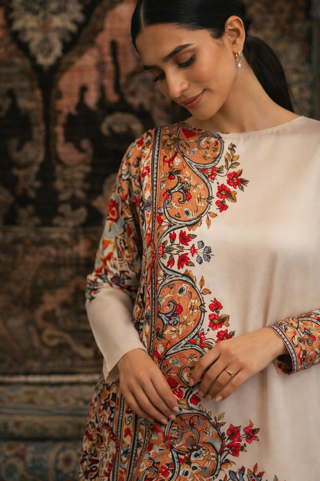 Revel in the enduring beauty of "Zar-e-Kashan", a radiant symphony of elegance, poise, and unapologetic individuality