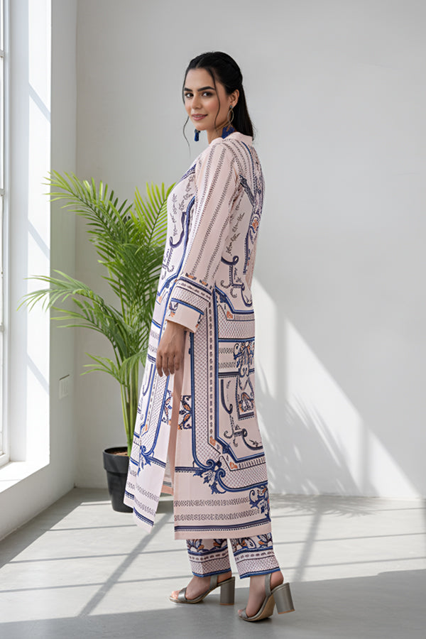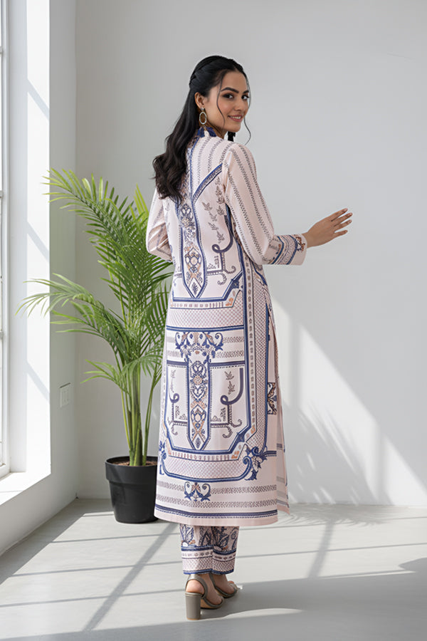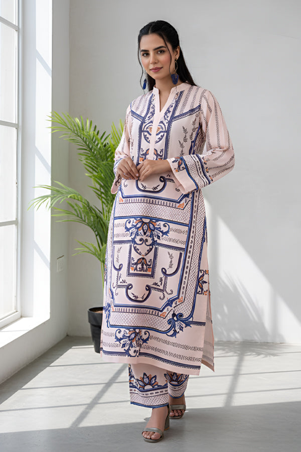 Refresh your winter wardrobe with our Serenity Co-ord Set, a beautifully tailored outfit made from Soft Khaddar. Designed to bring comfort during the early winter chill, this set blends traditional Pakistani charm with modern sophistication. The soft pastel tones add graceful warmth to your look, while the breathable texture ensures comfort through changing seasons.